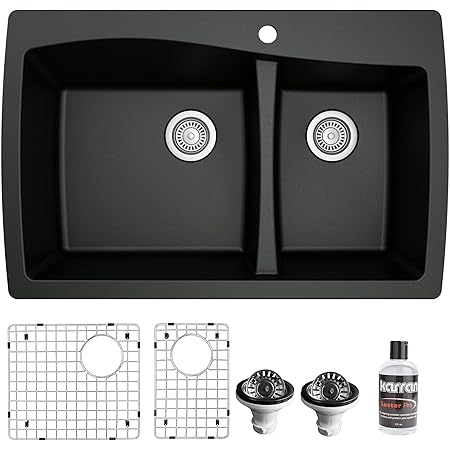 Kitchen Sinks Drop In 21X24 Tablespoons To Ounces : Karran Drop In Quartz Composite 34 In 1 Hole 50 50 Double Bowl Kitchen Sink In Concrete Amazon Com / You may think that buying a kitchen sink is a very difficult task or frustrating.
